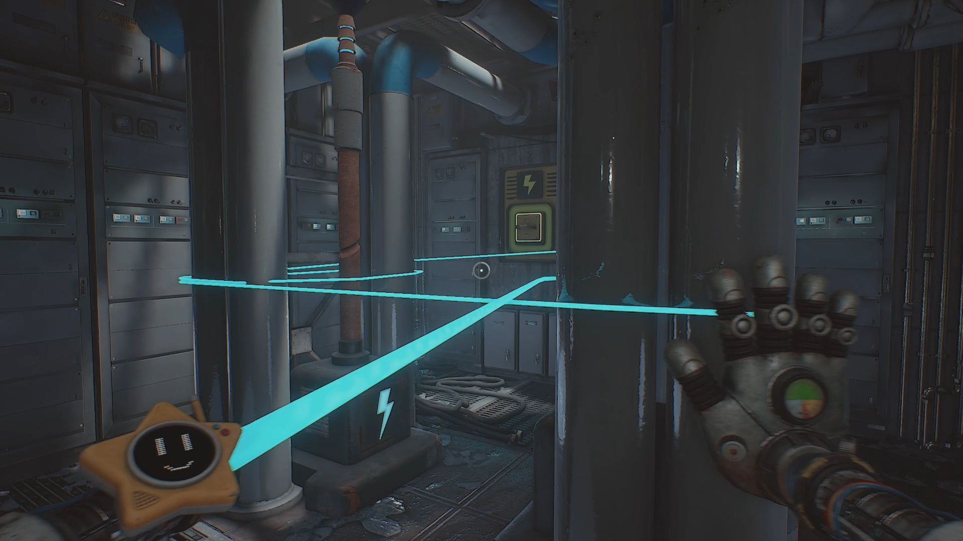 On the wall you will find a pressure puzzle to complete. This puzzle features two pressure tanks that don’t have handles and power breakers on the wall you can move when they are powered up.